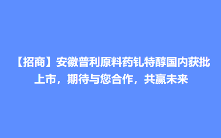 【招商】安徽普利原料药钆特醇国内获批上市,期待与您合作,共赢未来