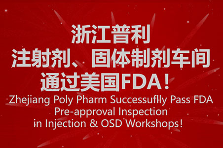 浙江普利注射剂、固体制剂车间通过美国FDA