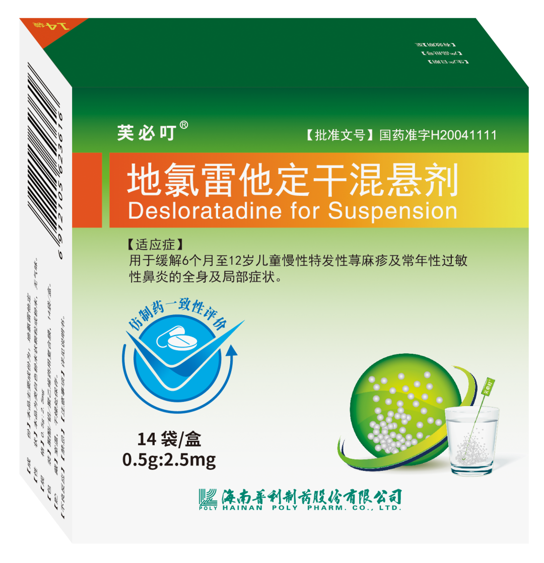 芙必叮地氯雷他定干混悬剂,说明书已批准6个月低龄儿童即可使用,甜甜的水果味宝宝喜欢,可溶于牛奶、果汁中服用,不含防腐剂,无嗜睡镇静,儿童专用抗组胺药。