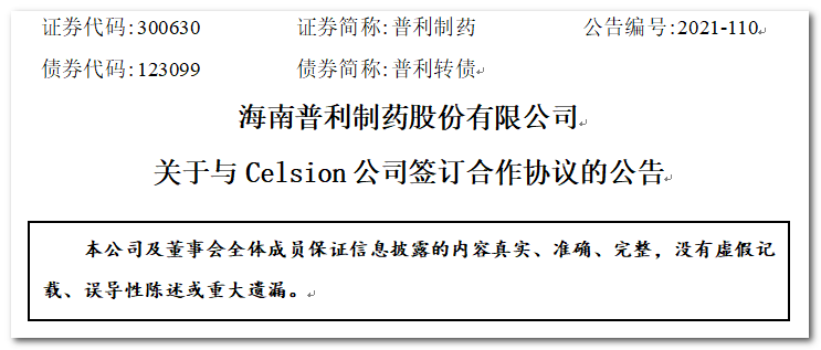 (三)Celsion公司应向普利制药提供某些双方同意的有关DNA疫苗项目的技术文件和信息。